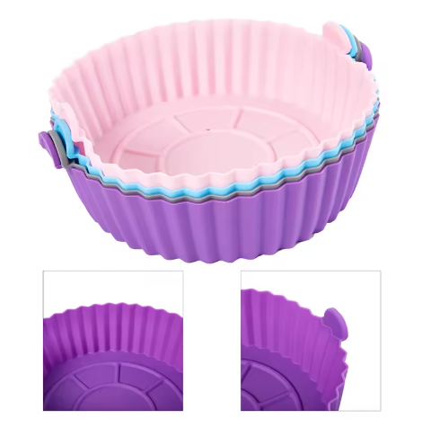 Nuestras bandejas de silicona reutilizables te permiten cocinar con facilidad, mantener tu airfryer impecable y ahorrar tiempo en la limpieza. Perfectas para cualquier tipo de receta: desde frituras hasta pastelería.